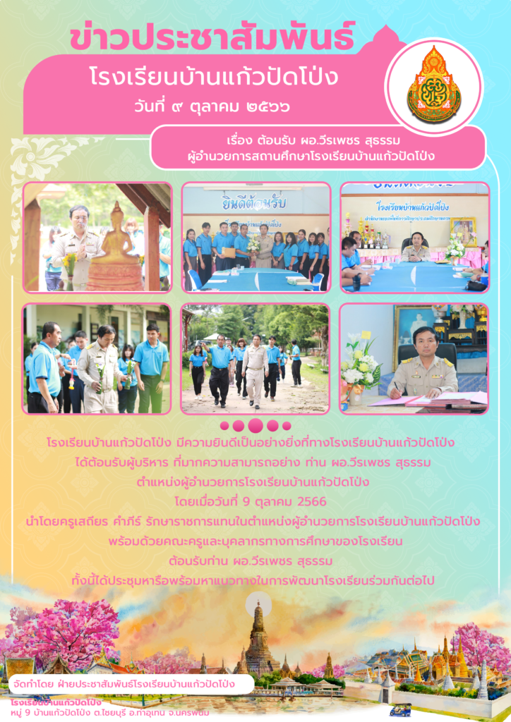 โรงเรียนบ้านแก้วปัดโป่ง มีความยินดีเป็นอย่างยิ่งที่ทางโรงเรียนบ้านแก้วปัดโป่ง